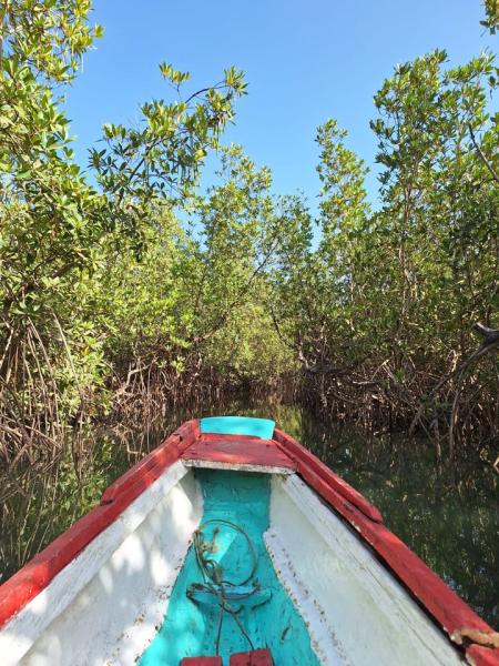 Lamin Lodge is an inspiring place to pause and unwind, nestled along the winding Lamin Bolong. This charming wooden bar and restaurant sits right on the riverbank, surrounded by lush mangrove forests. From here, you can enjoy panoramic views of the creeks while spotting playful green velvet monkeys and vibrant bird species. You’ll even learn about traditional Gambian techniques, like making cement and paint from oyster shells.